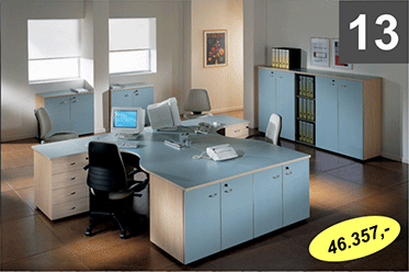 Řada TEAM je program, který má velké množství prvků k vytvoření samostatné či velkoplošné kanceláře. Stolovina s lamino podnožím. Výška pracovní plochy je 720mm.Stolové desky 25mm ABS hrana. Skříňovina ve třech výškových úrovních: 795,1250,2015mm. Šíře 450 a 900mm, hloubka 450mm. Krycí desky 25mm a ABS. Veškeré prvky jsou v demontovaném stavu kromě kontejnerů. |